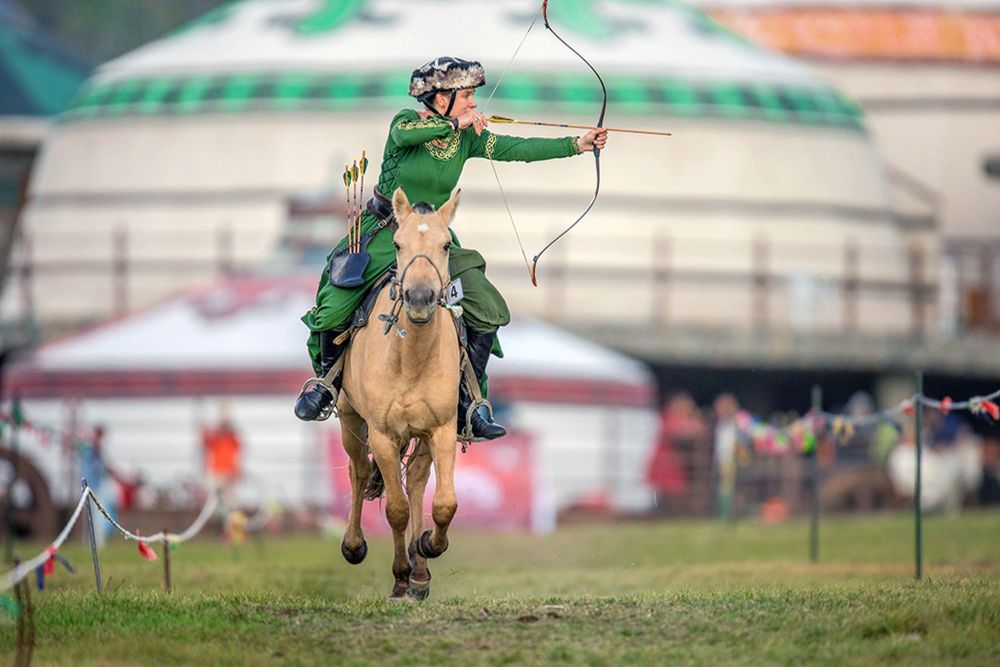 A mongol íjászat különlegességei az íj és a lövés technika. A mongol íj hagyományosan rövidebb, amelyet kiválóan lehetett használni lovasíjászatra.